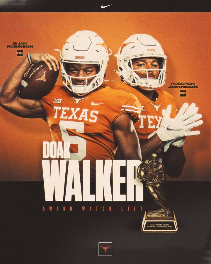 Robinson Johnson Selected To Doak Walker Award Watch List University Of Texas Athletics